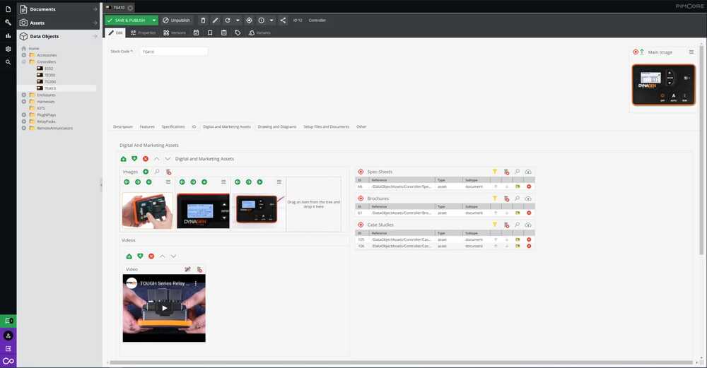 After consolidating all their data, Torq IT developed a Pimcore PIM structured site with a self-service frontend where Dynagen's many clients can directly access and navigate manuals, specification sheets, and configuration documentation needed to set up and customize their products. The implemented solution also includes a permissions module that allows Dynagen to control access to files based on the given user's relationship with their business - some files are available to the public, and others are available solely to the vendors and clients.